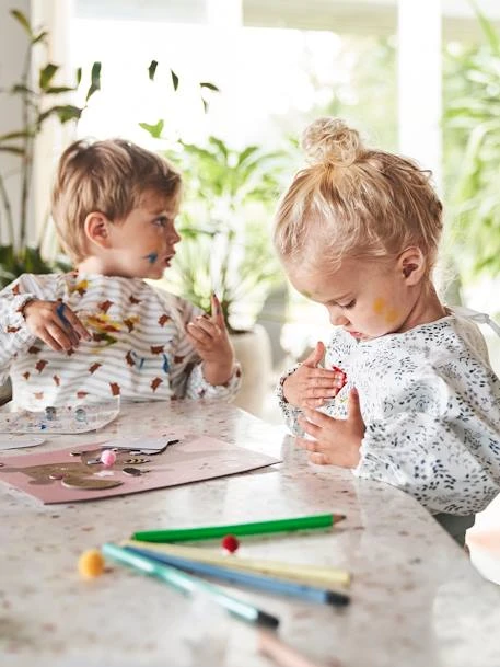 Un bavoir très pratique avec ses manches longues et sa forme bien couvrante. Grâce à lui, les repas sont sereins et les habits restent propres !
