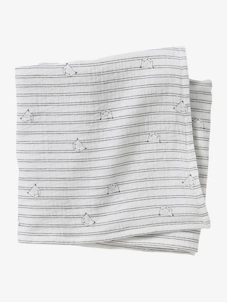 Coffret cadeau 3 pièces : lange + doudou + hochet en gaze de coton et bois. Garnissage polyester.