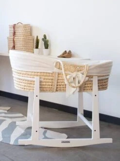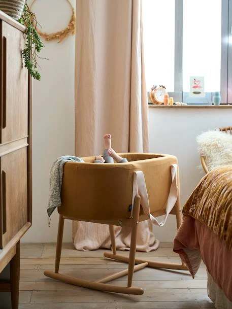 - S’adapte sur son support en bois naturel (vendu séparément sur notre site) pour se transformer en un clin d’œil en berceau au doux balancement.