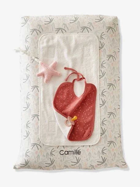 Cette housse en coton bâchette recouvre votre matelas à langer de jolis coraux. Elle est idéale si vous souhaitez avoir une housse de rechange sous la main et plaira à votre enfant avec son jouet étoile de mer avec clochette à l’intérieur.