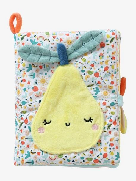 - Sur la couverture, poire appliquée avec broderies sur gaze de coton