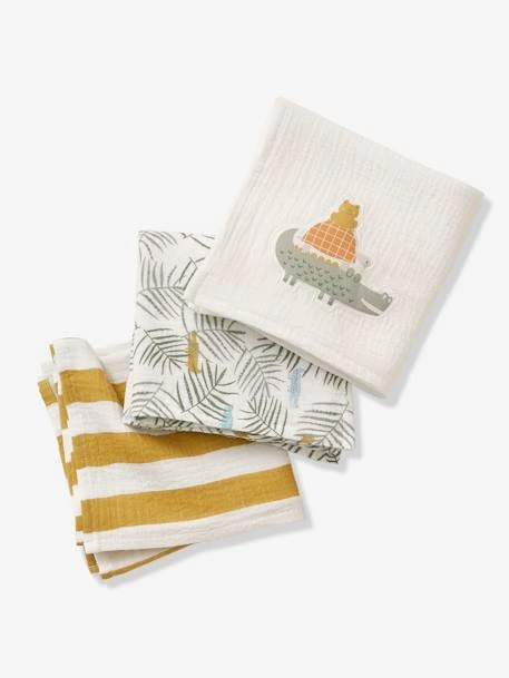 - 3 langes assortis : 1 lange imprimé jungle, 1 lange rayé et 1 lange uni avec motif appliqué