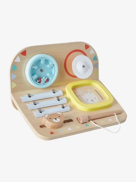 Initiez bébé aux plaisirs de la musique avec son premier orchestre ! Une petite table d’activités avec 5 instruments et sons différents qui l’intrigueront et lui donneront le sourire !