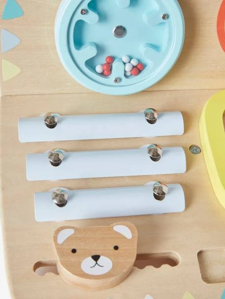 - 5 instruments : jeu de billes à tourner, cymbale, xylophone, tambour et guiro