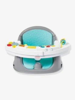 Rehausseur 3 en 1 avec plateau de jeu électronique: siège d’activités, réhausseur avec plateau et réhausseur simple. La sécurité est maximale avec le harnais 3 points et la double fixation par sangles pour utilisation sur une chaise. Le réducteur d’assise en mousse est confortable pour bébé et peut se retirer lorsqu’il grandit. Le plateau de jeu est doté d’un piano lumineux, d’un miroir, d’un jeu d’engrenages et d’un boulier. Il s’ouvre pour faire place à un petit plateau sur lequel on peut positionner une tasse ou un biberon. Utilisable dès que bébé peut se tenir en position assise.