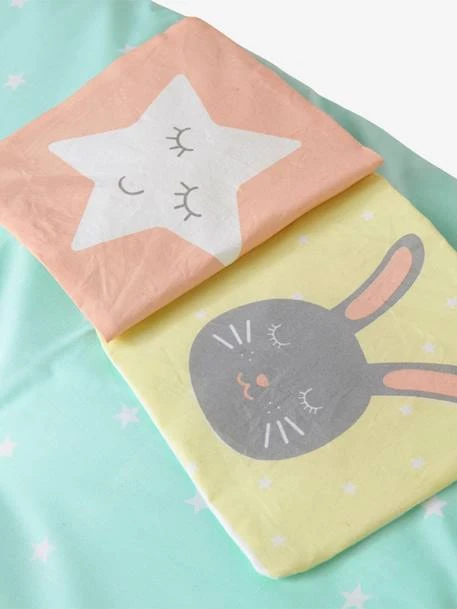 - Jouets attachés au tapis : 1 lapin avec oreilles en volume, 1 nuage « pouet-pouet », 1 livre avec 4 pages imprimées et papier crissant, et un chat avec clochette.